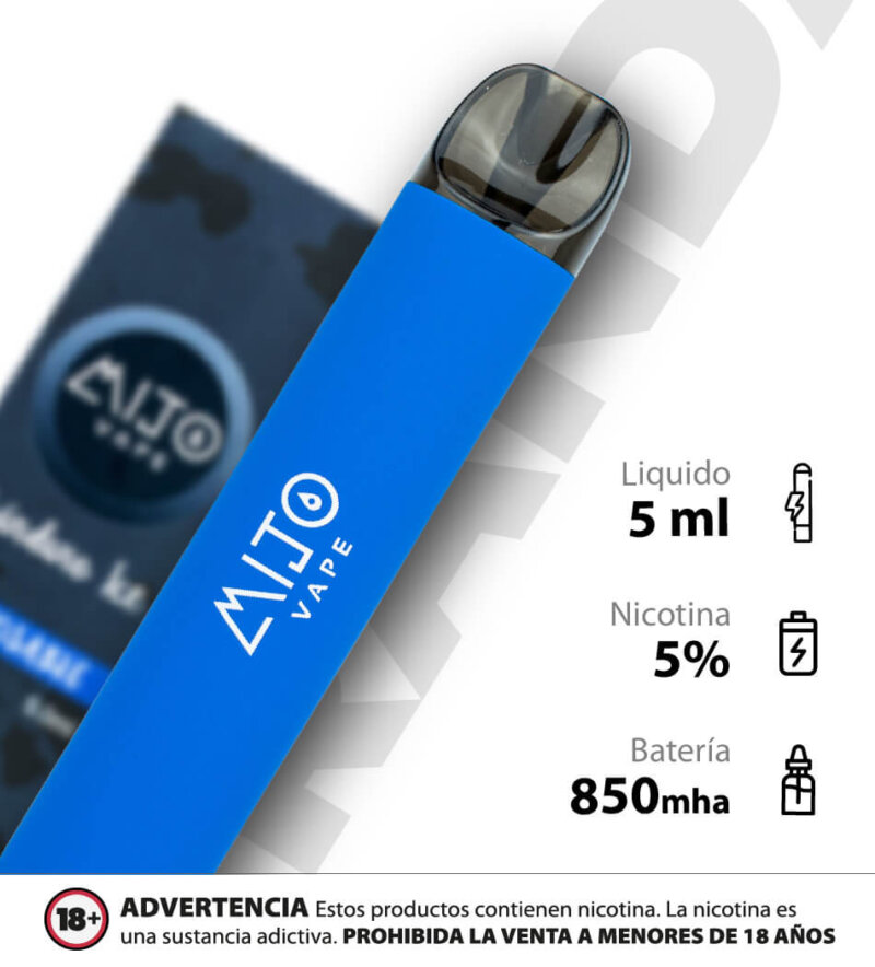 El desechable Mijo Vape, es un vape de 1.500 puff, cuenta con una bateria de 850 mha y 5ml.